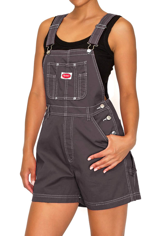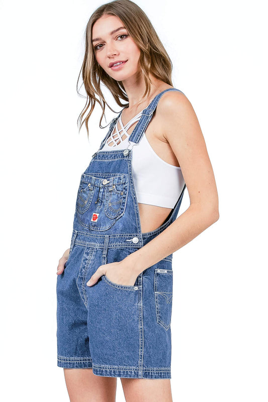Lana Roux Relaxed Fit Boyfriend Short Overalls