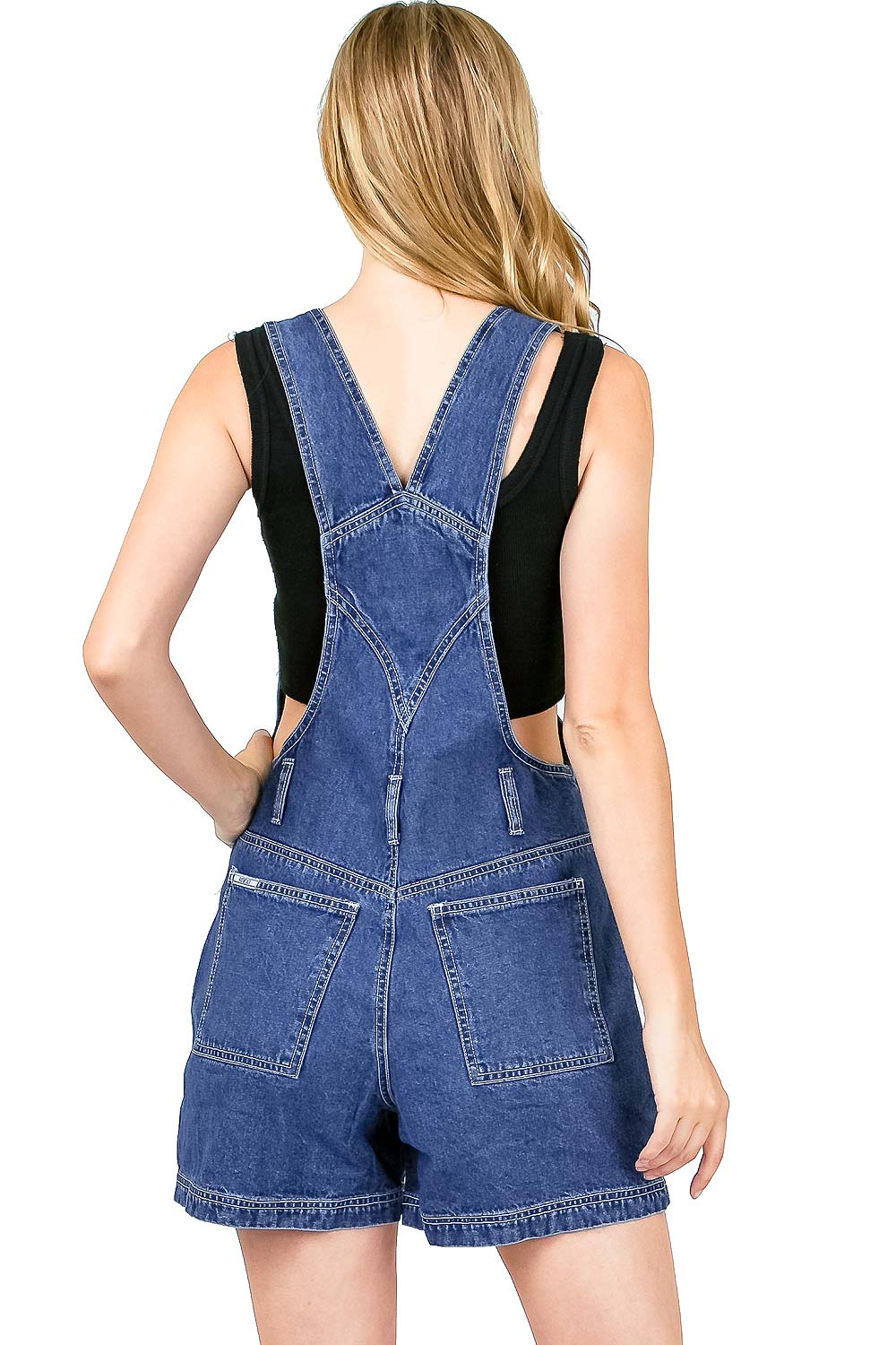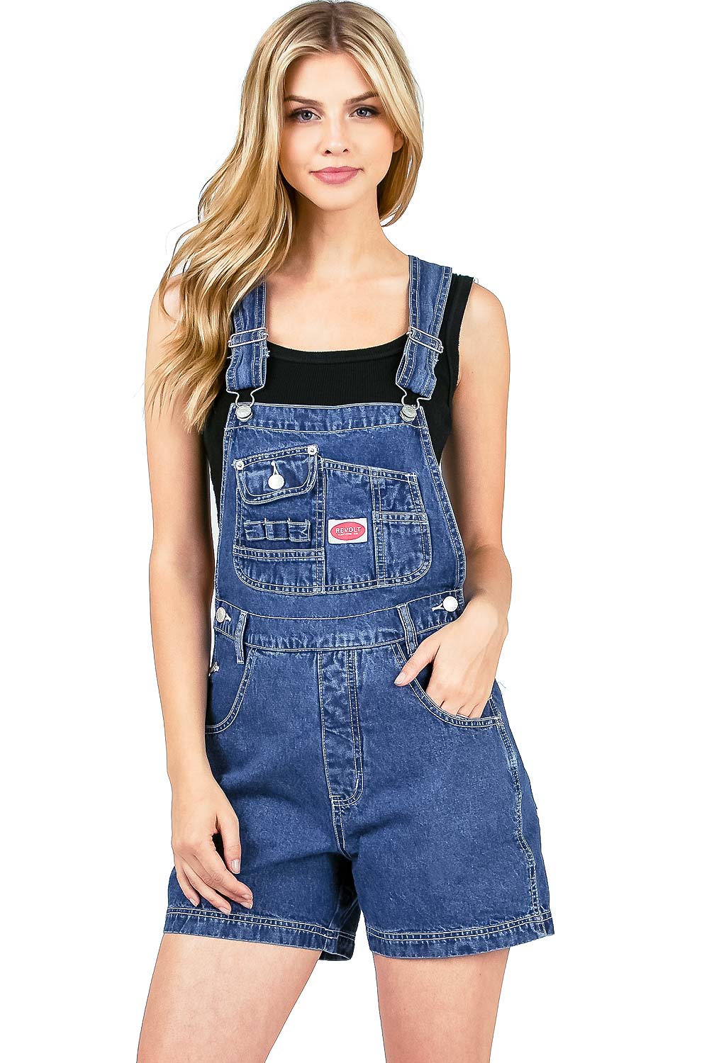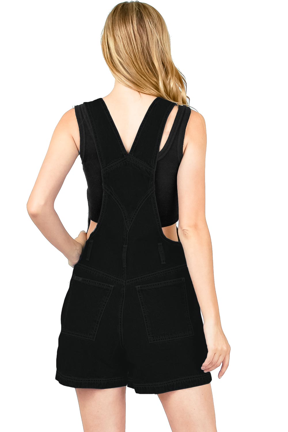 Twill short overalls with a multi pocket bib and logo patch detail. Traditional straps with clasp closures. Pockets on the front and back with button closures at the sides. Looks great paired with crop tops.