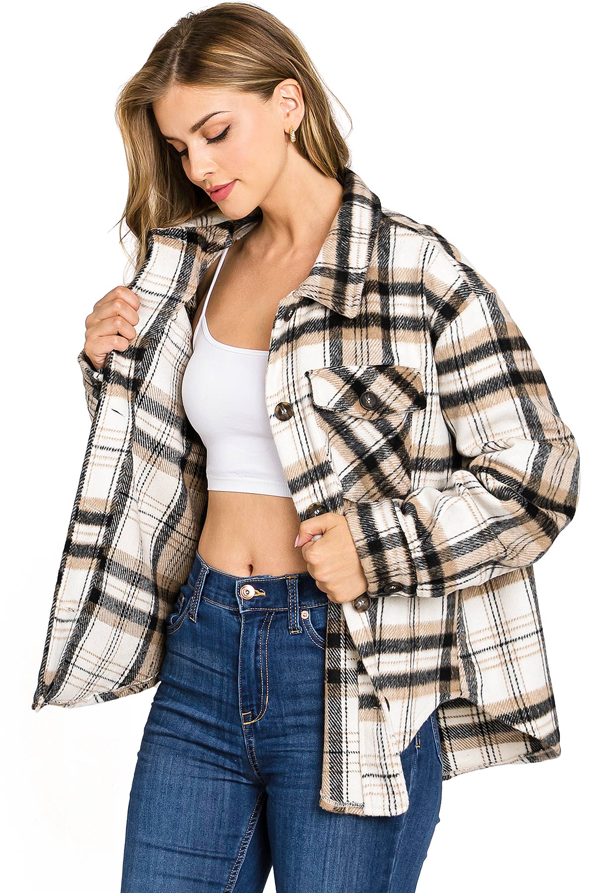 Trendy coat with a classic button down closure with flap pockets on the chest. Cozy with an oversize fit, perfect for layering over any casual outfit!