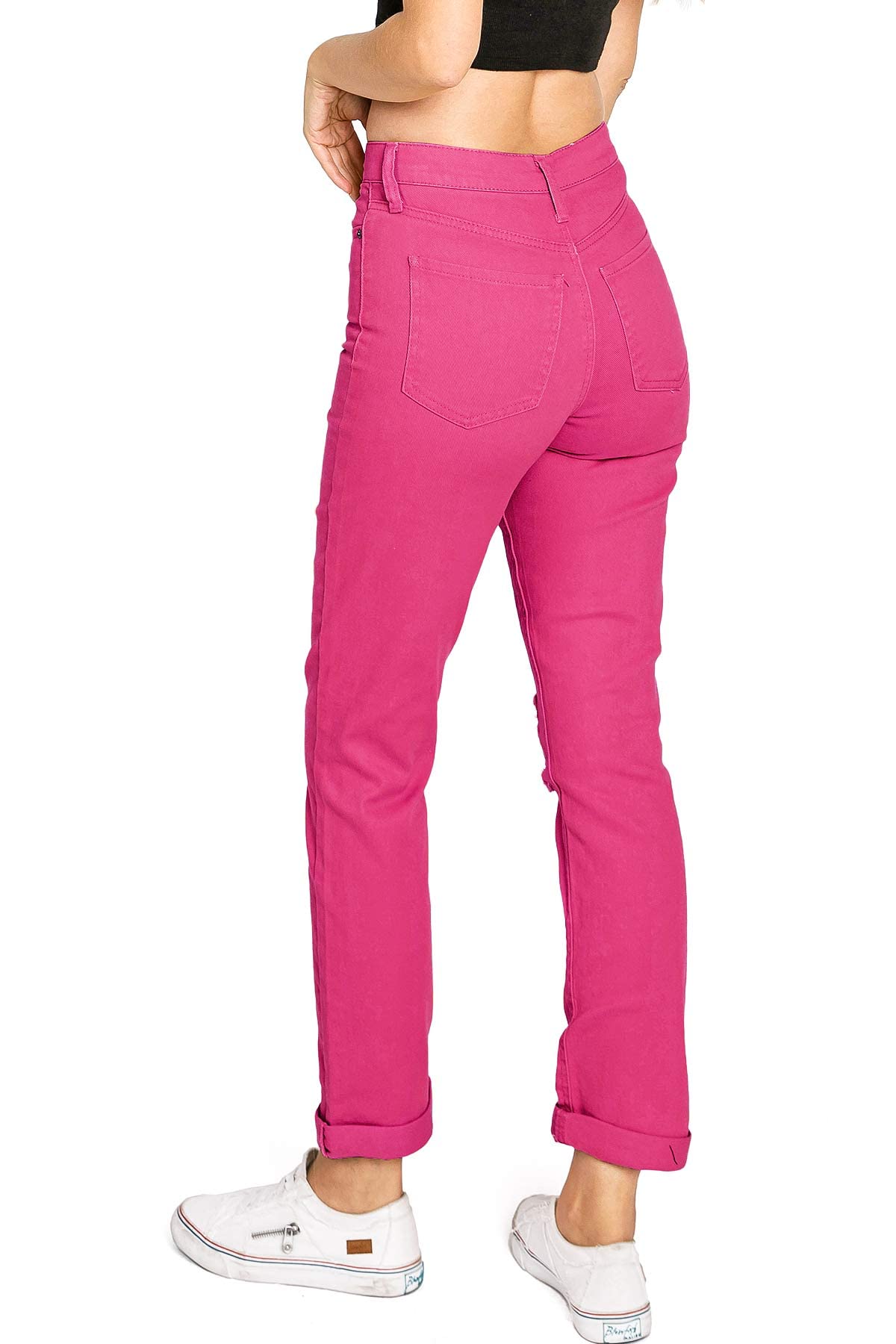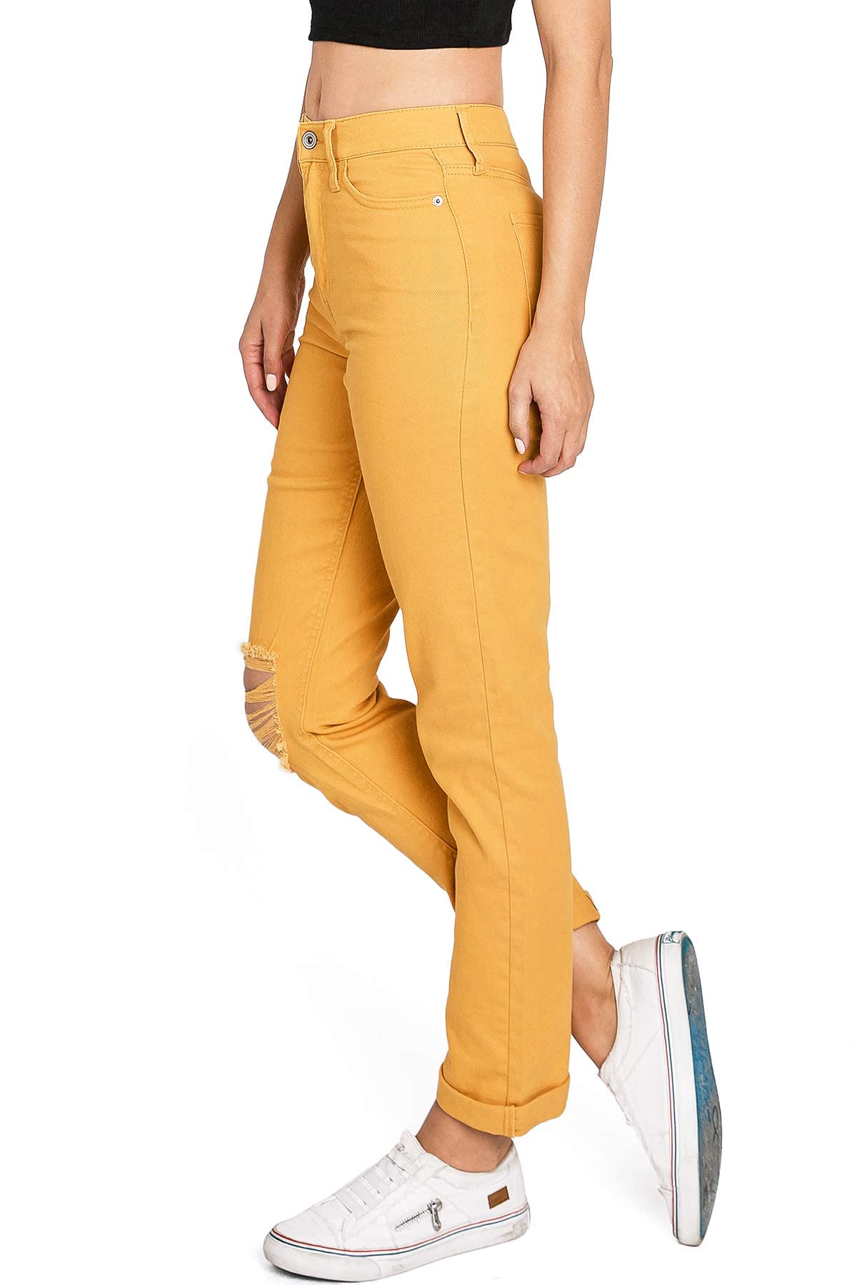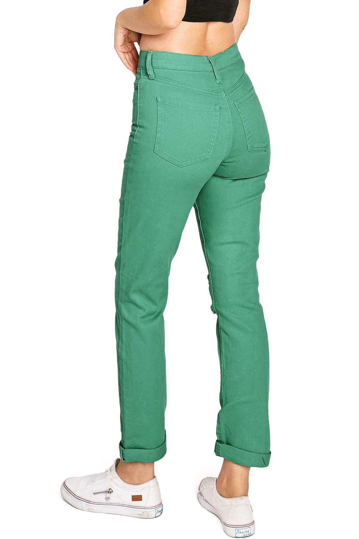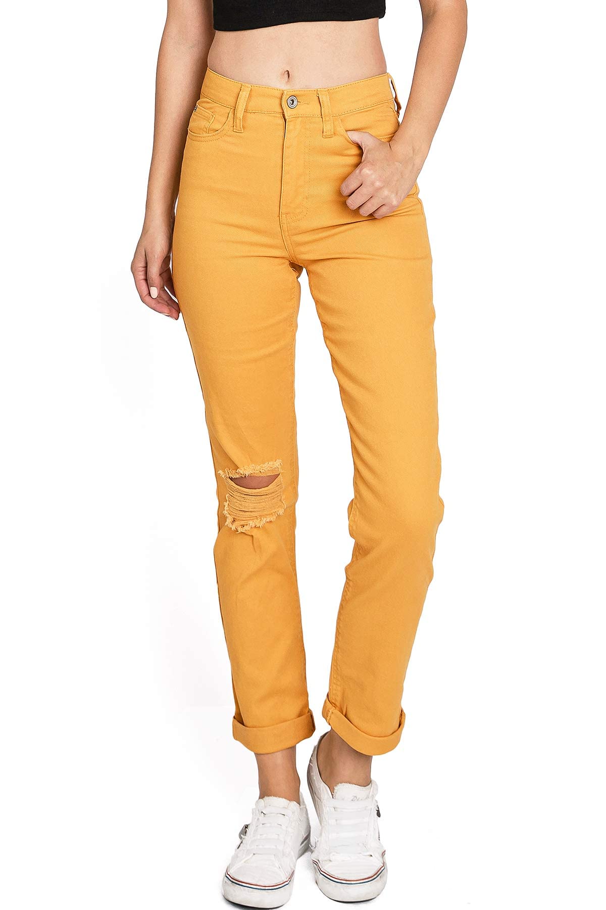 High-rise jeans in a vibrant wash with light distressing. Slim straight-leg with a cuffed hem. Traditional 5-pocket construction with a zip and button fly closure. Classic denim feel with a stretchy fit.
