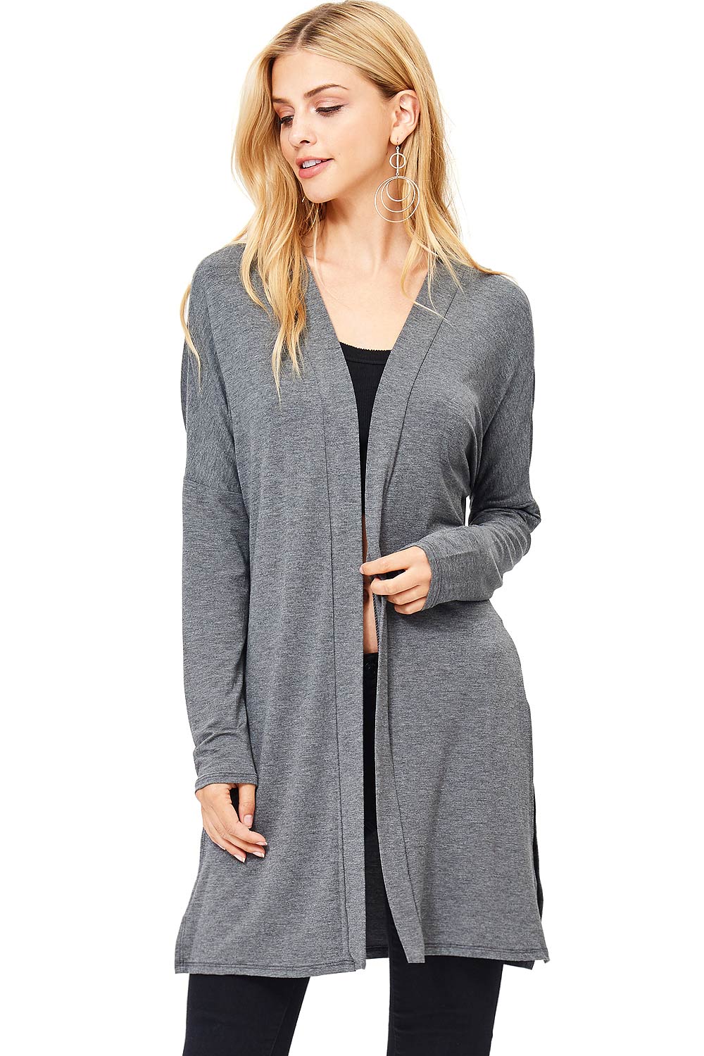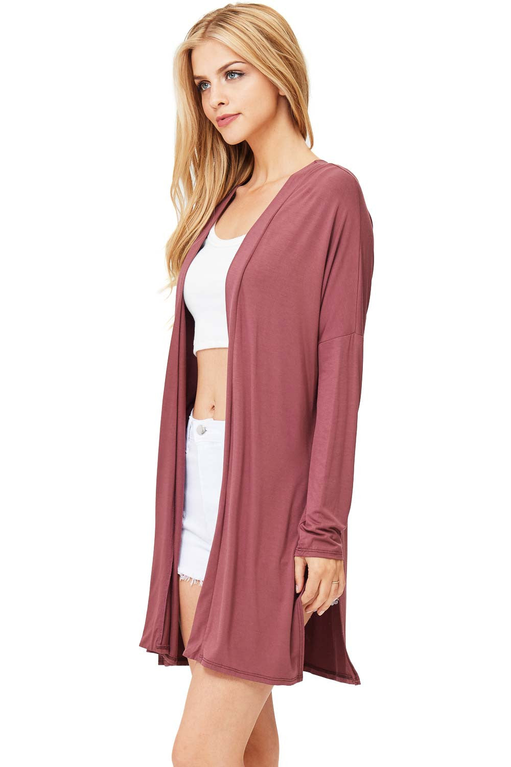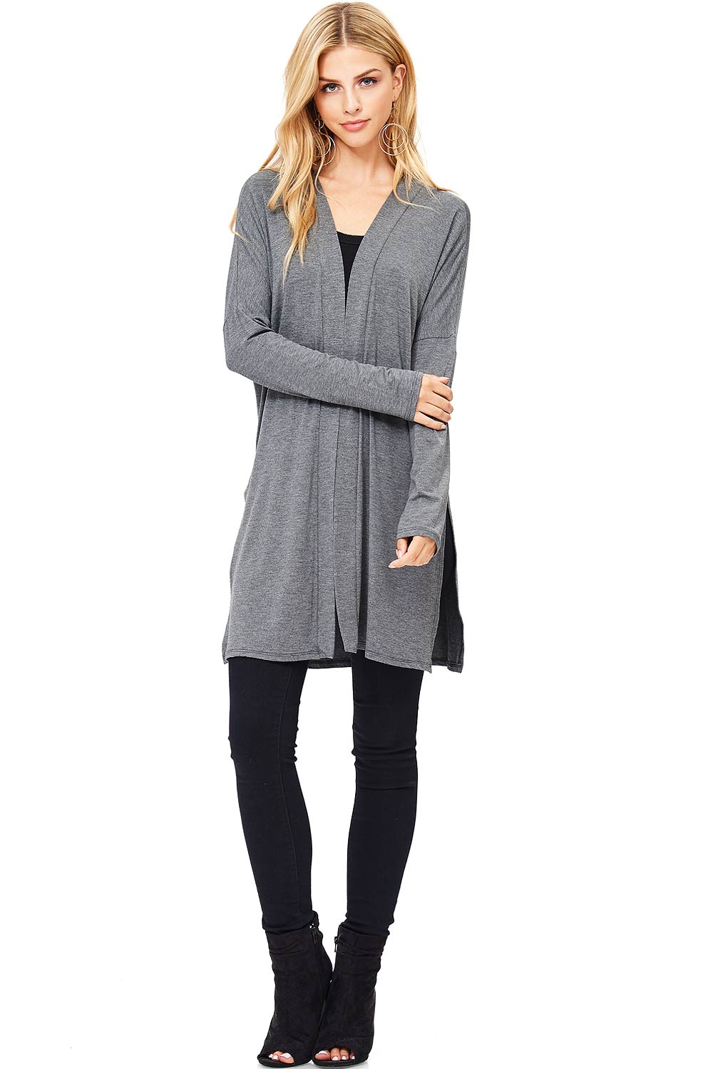 Classic cardigan with a open front style and slits on the sides, great for layering over dresses. Made of soft modal fabric for everyday comfort.