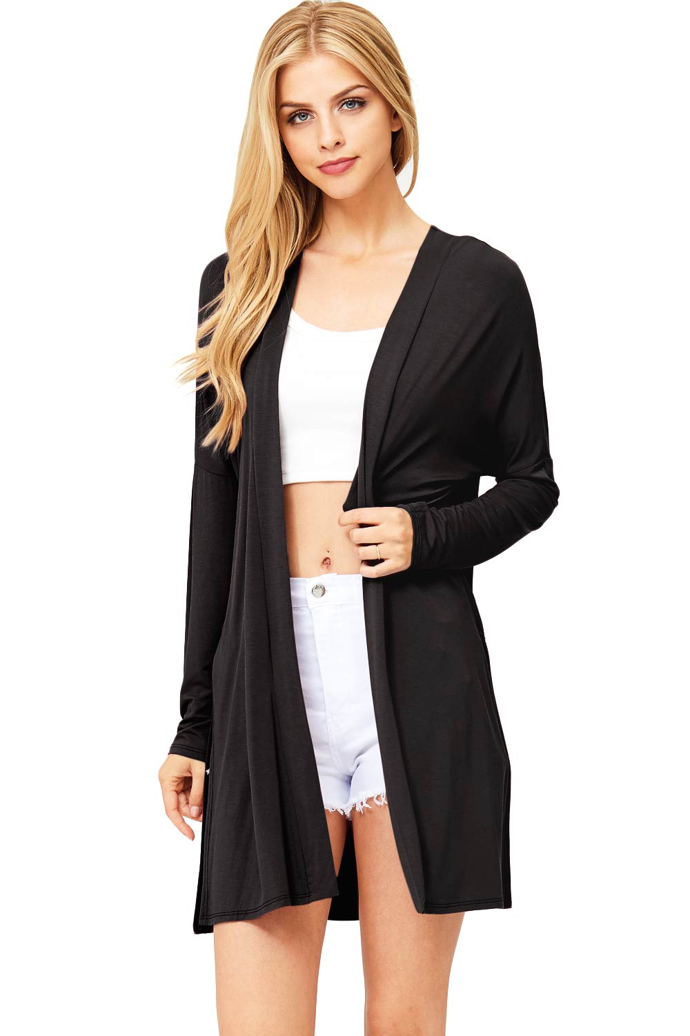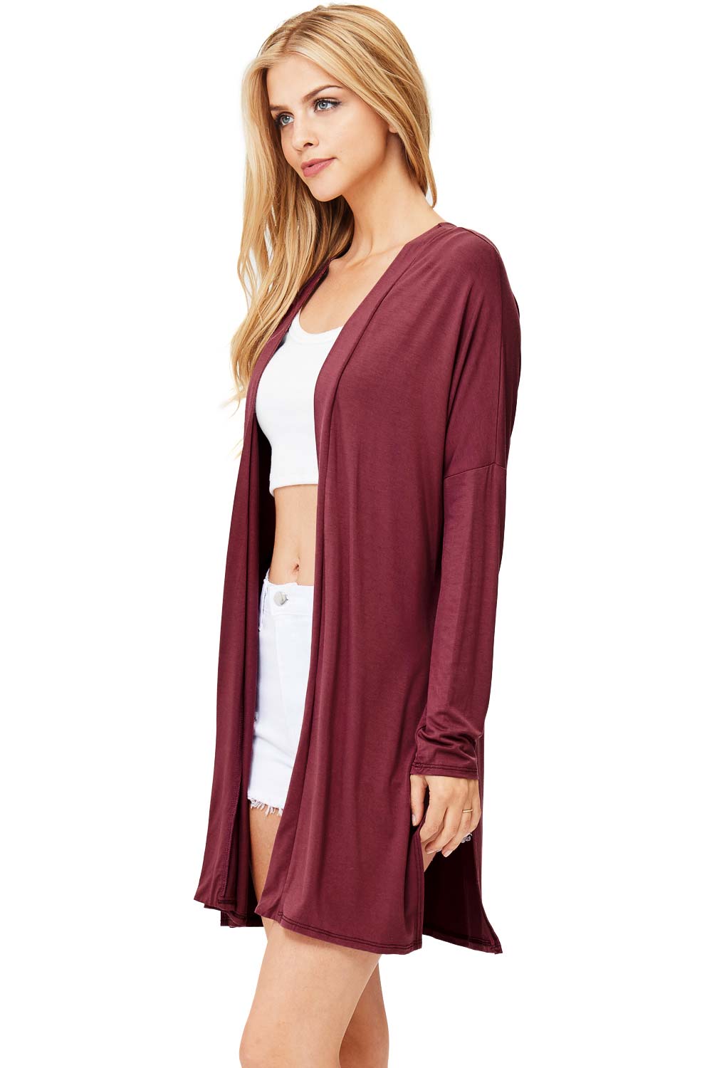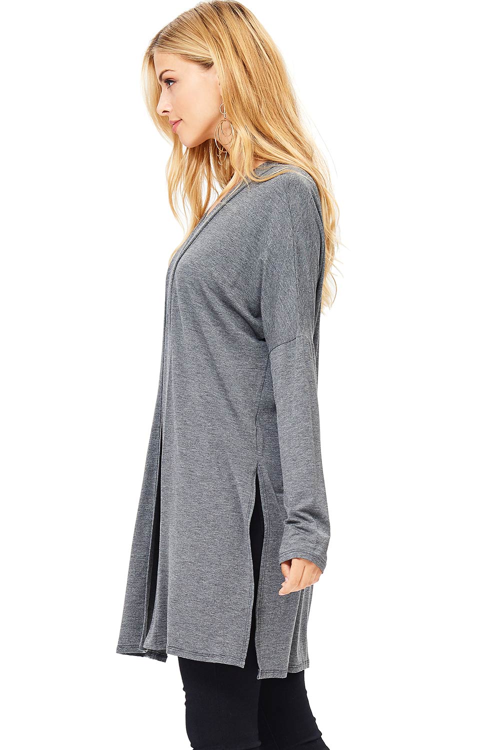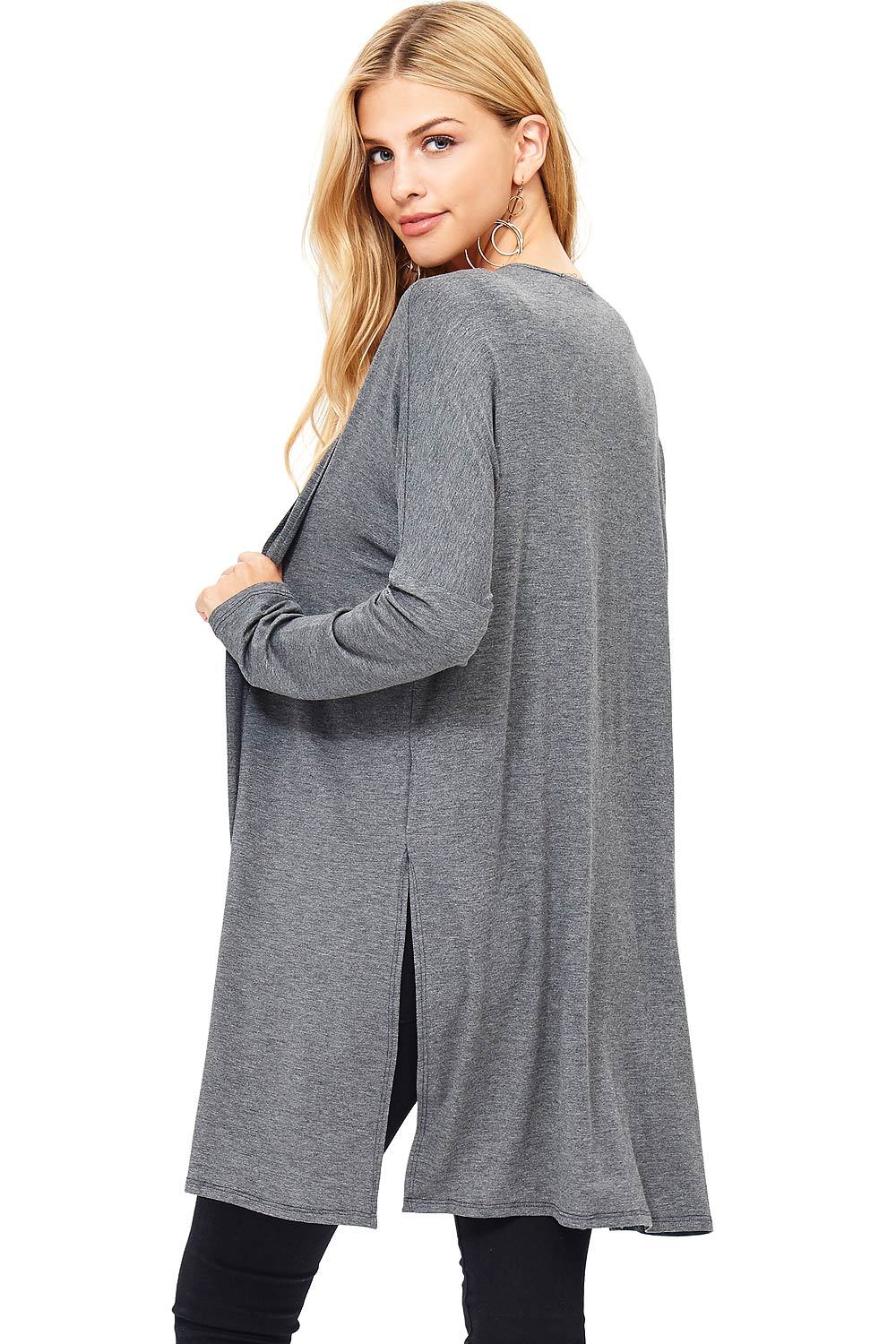 Classic cardigan with a open front style and slits on the sides, great for layering over dresses. Made of soft modal fabric for everyday comfort.