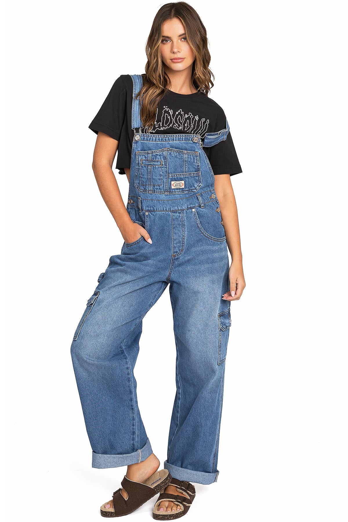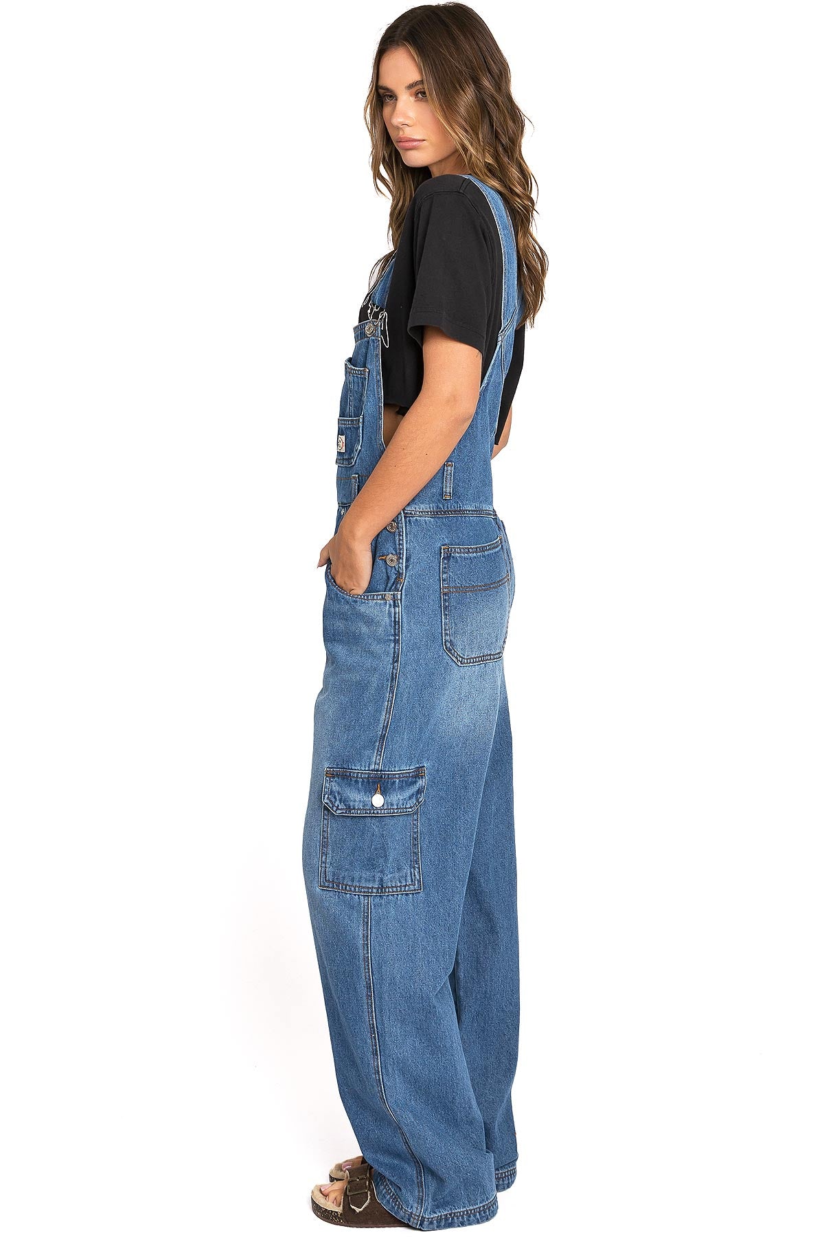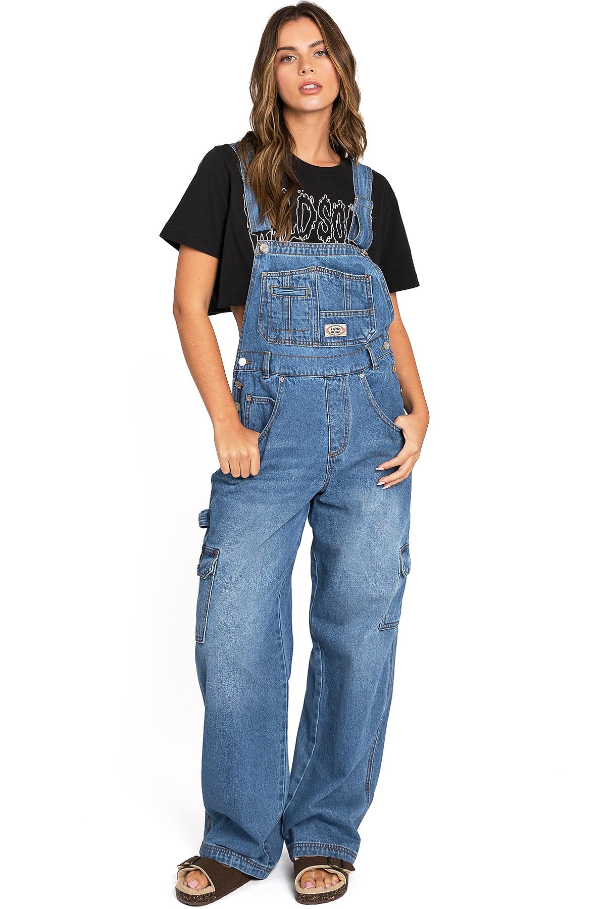 Timeless overalls with a retro, wide straight-leg silhouette. Functional, multi-pocket bib with a patch logo and traditional straps. High rise, rigid waist fit with button closures on both sides and classic 5-pocket design.
