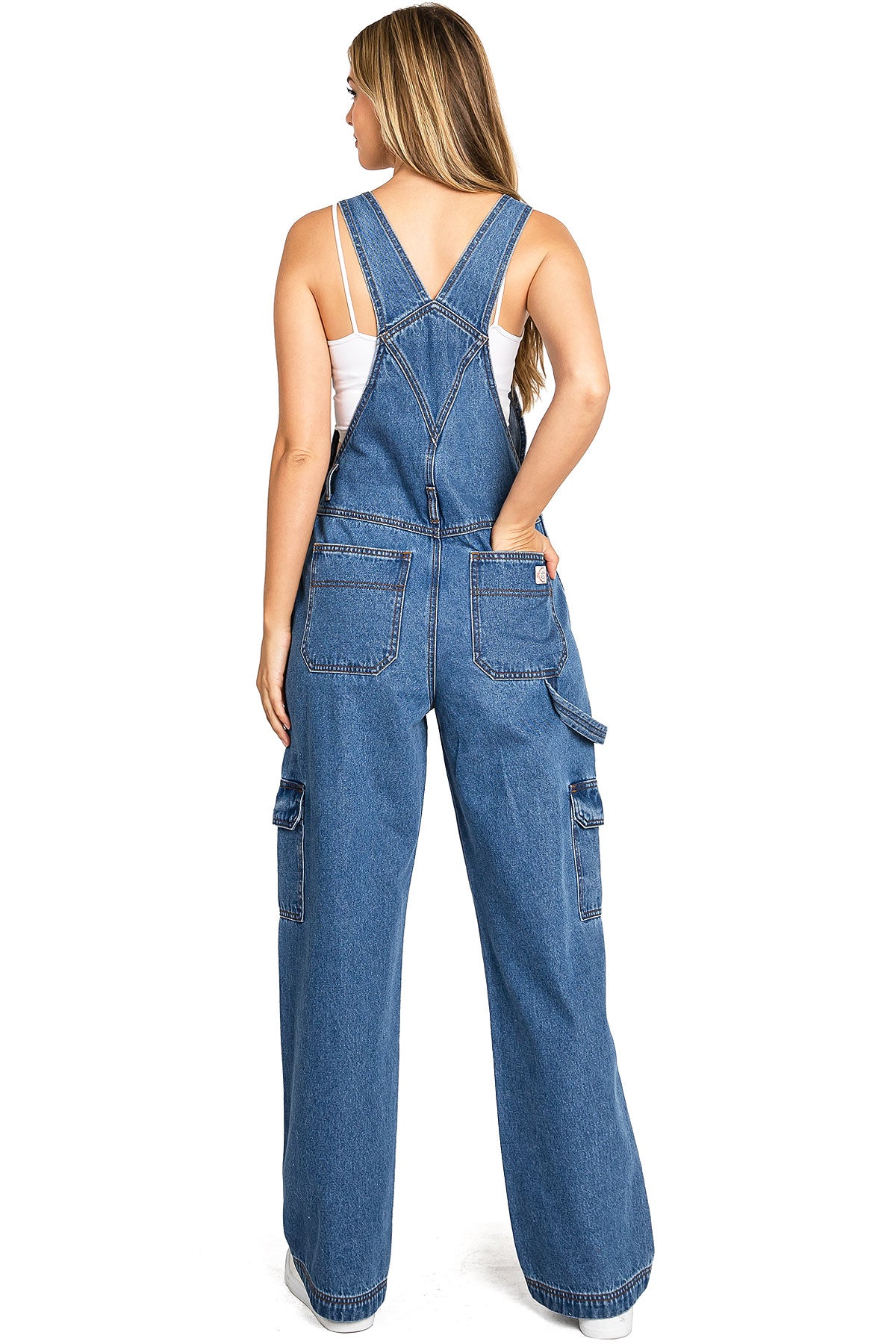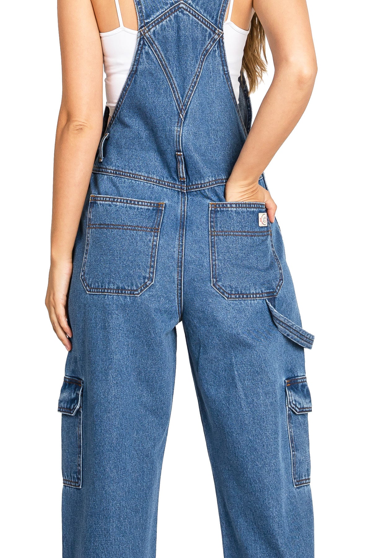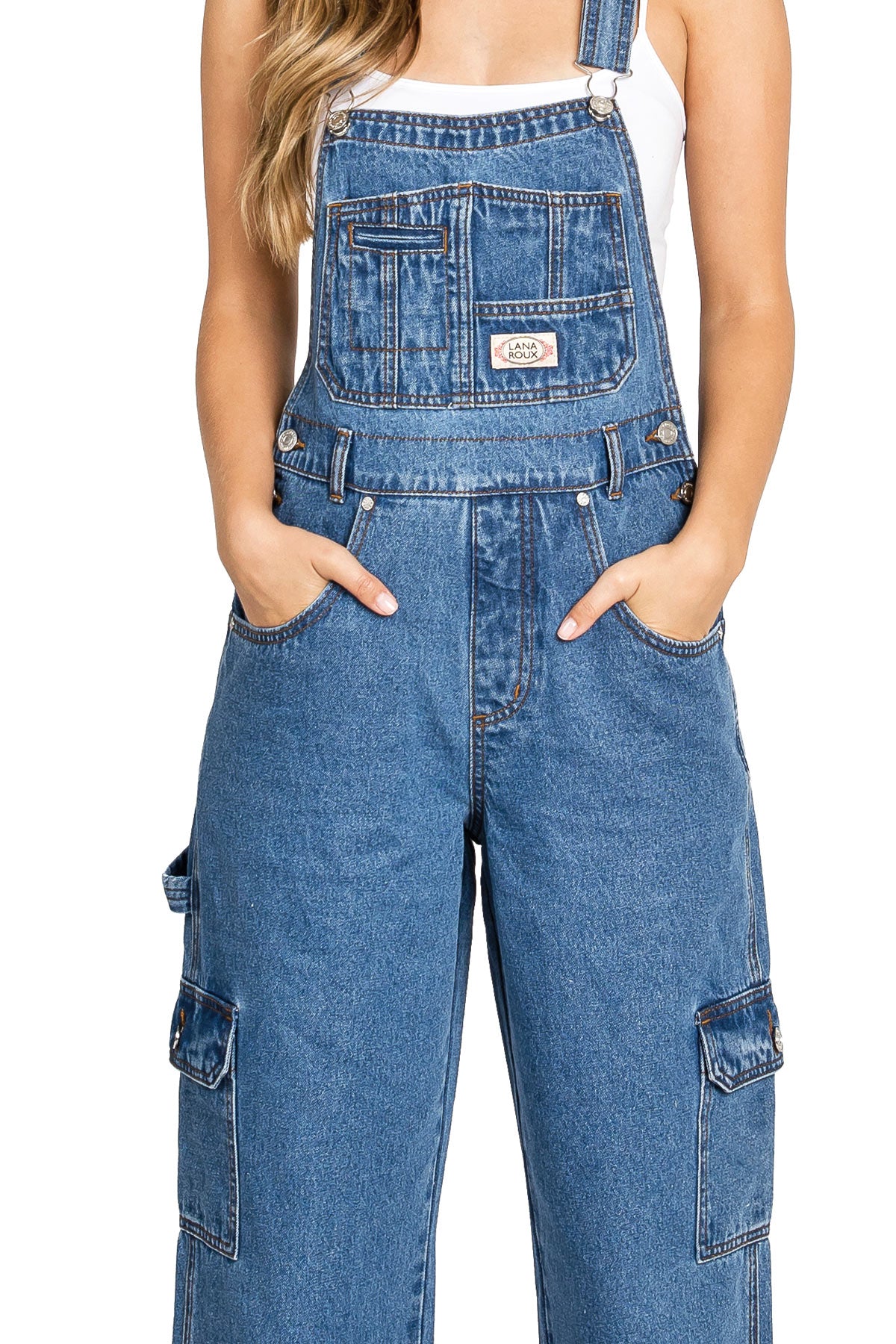 Lana Roux 90s Retro Dungaree Utility Cargo Denim Overalls
