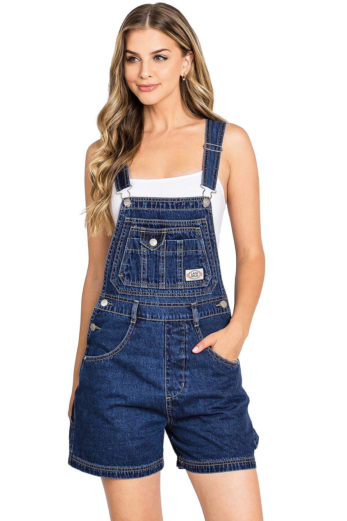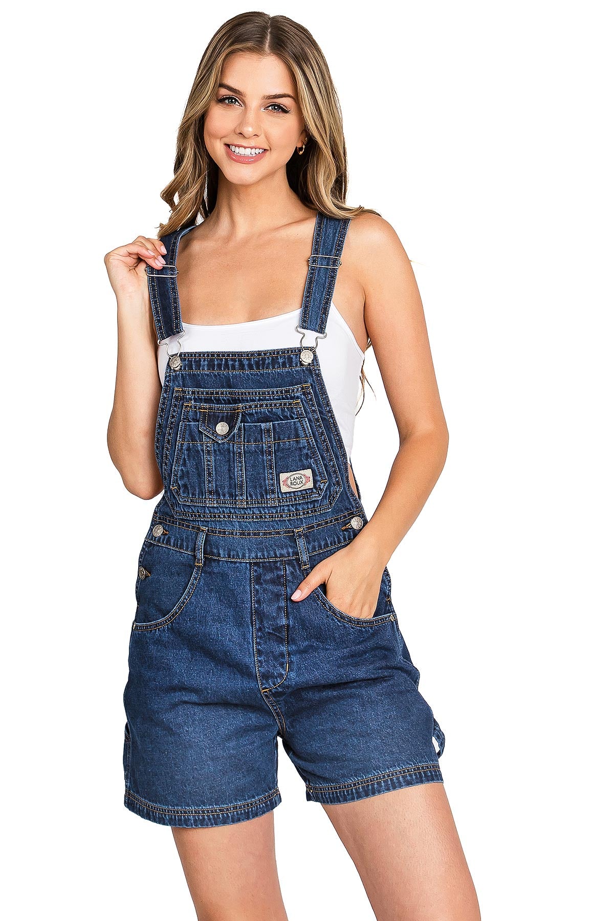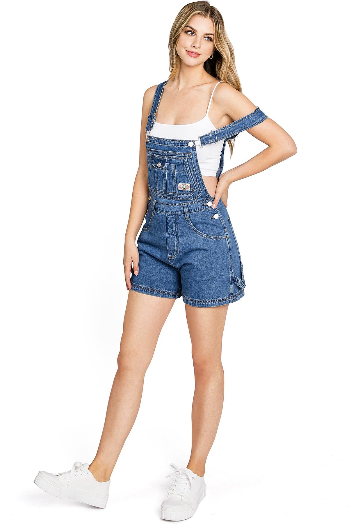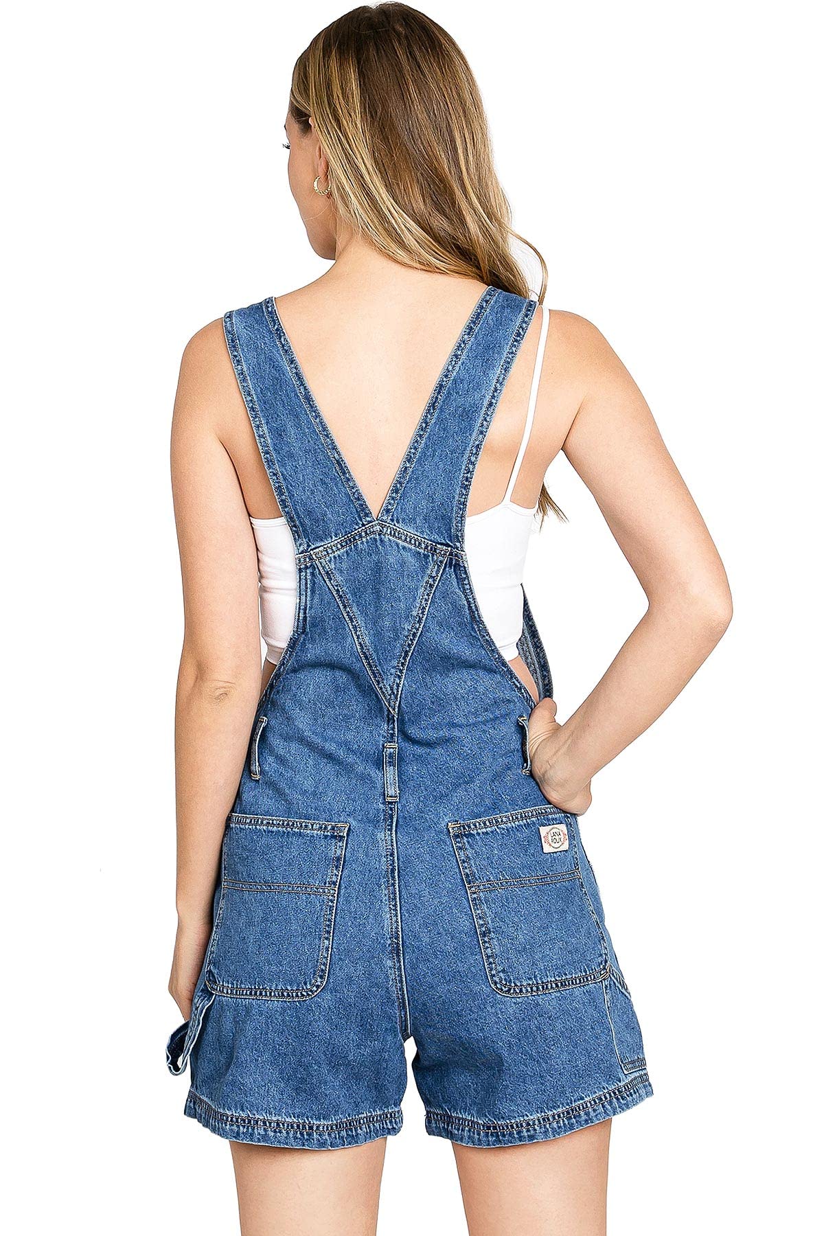 Lana Roux 90s Retro Utility Denim Short Overalls