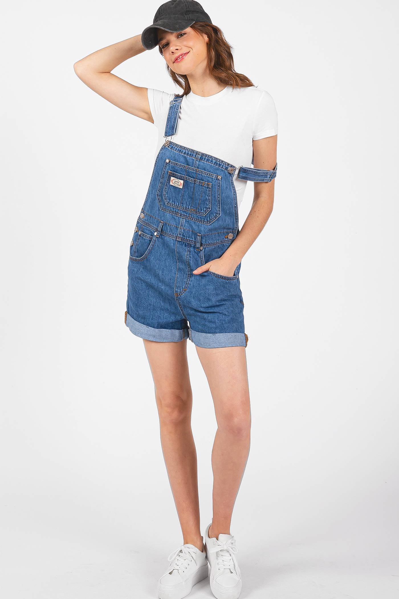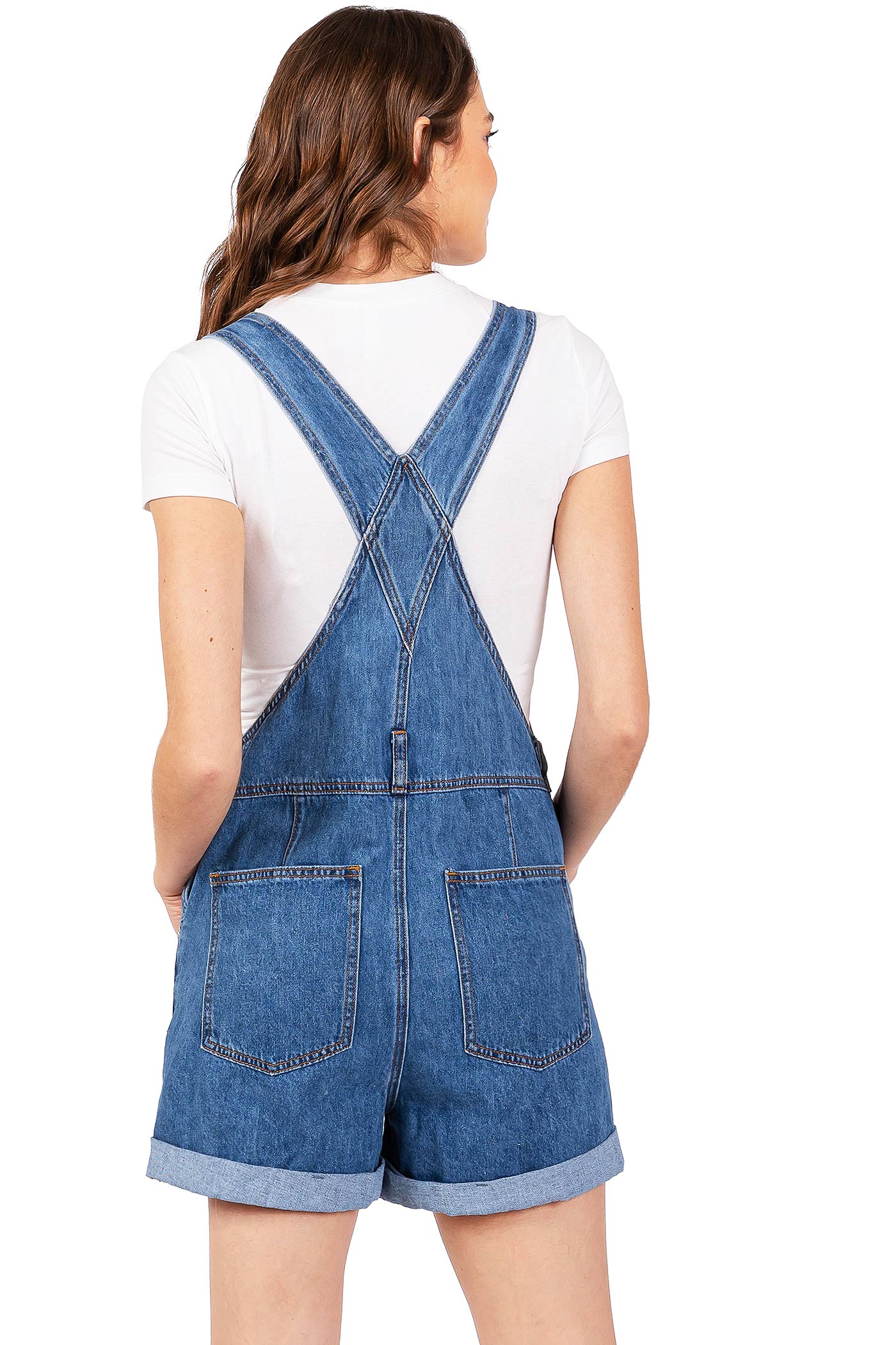 Lana Roux Womens Relaxed Fit Oversized Boyfriend Jean Short Overalls