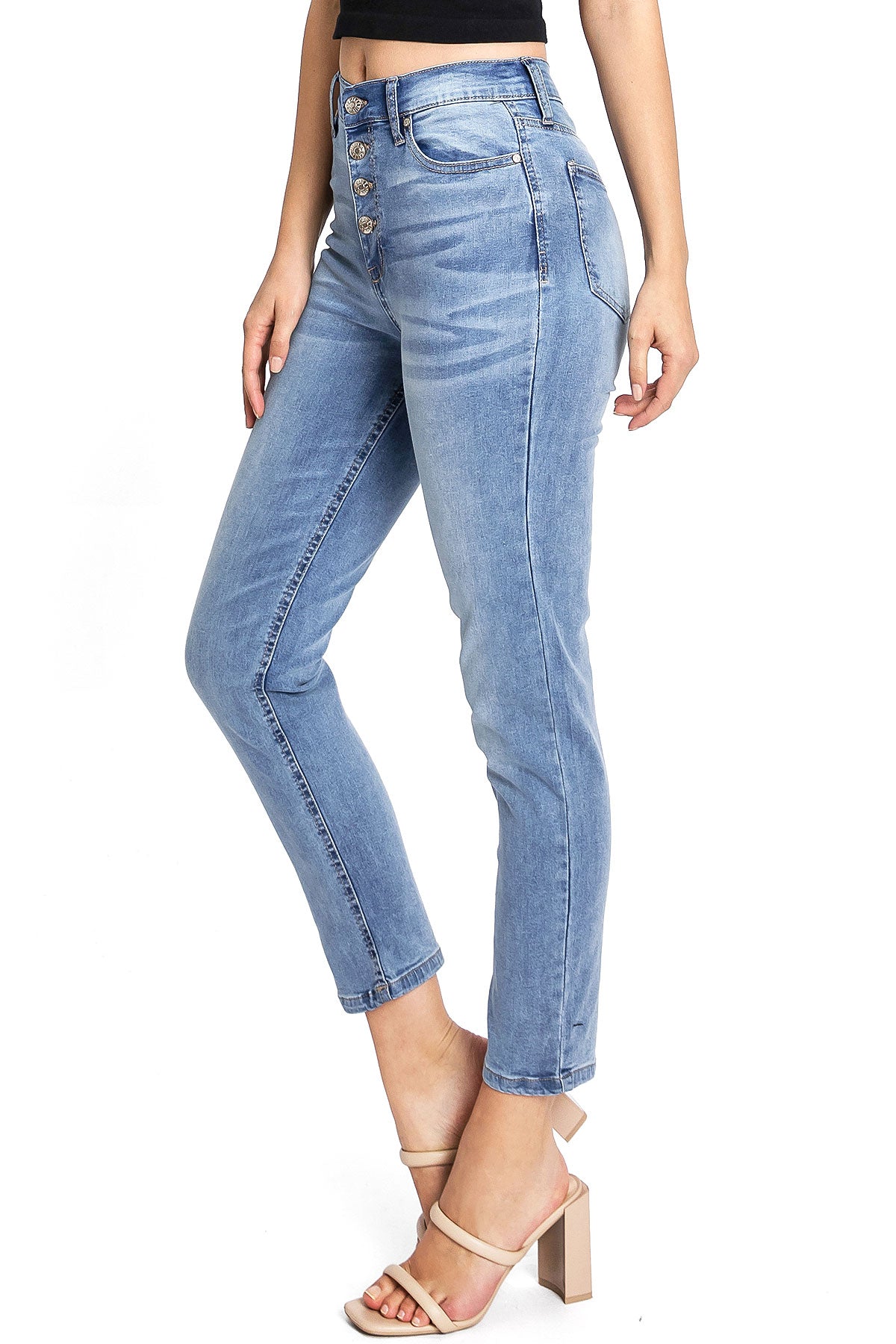 Sleek and smooth jeans cut with a slim leg and ankle length. Traditional 5-pocket construction with a button up fly closure. Stretchy denim feel. Perfect pick for any occasion.