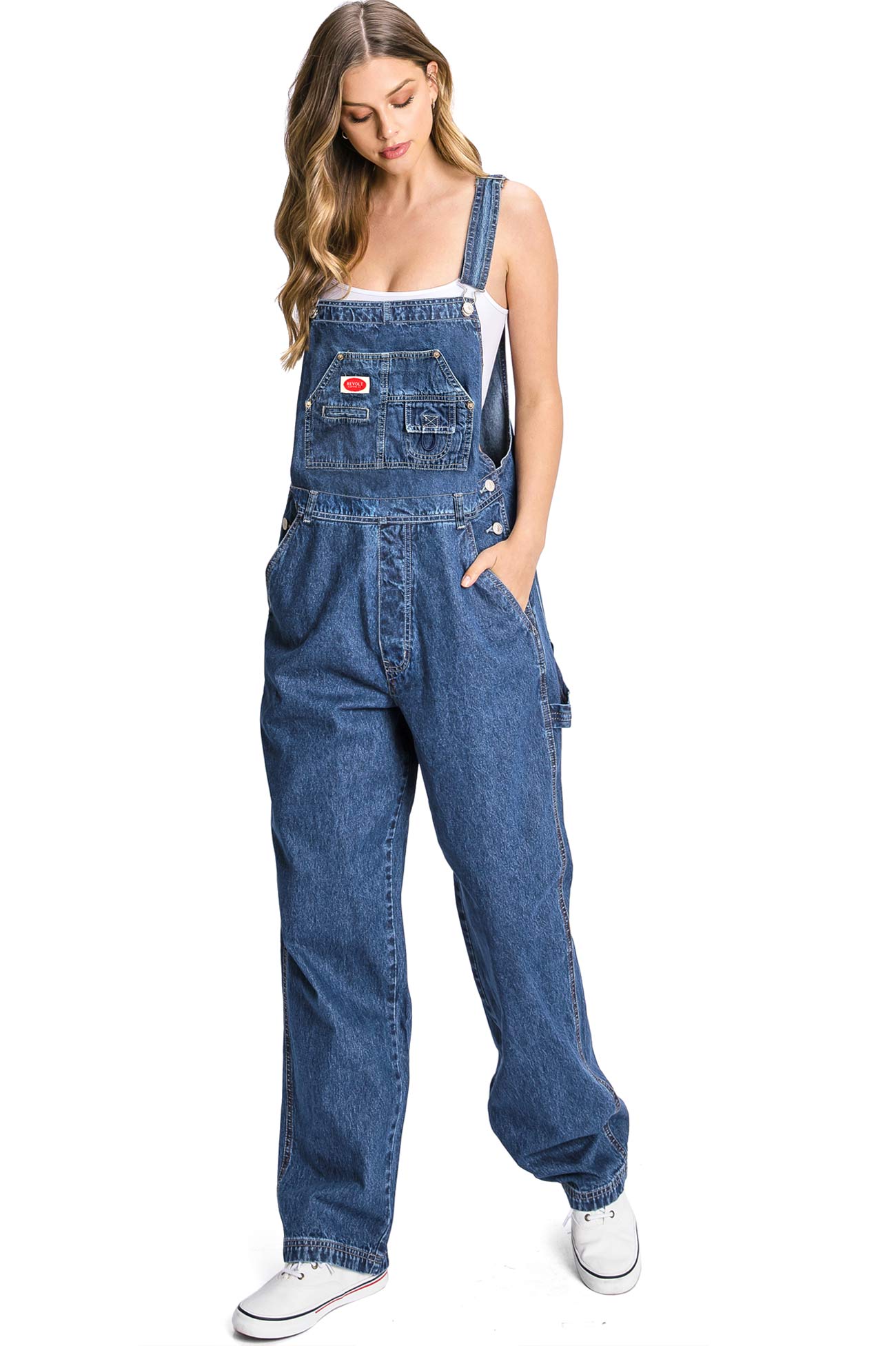 Classic twill canvas overalls with baggy straight leg fit. Traditional style bib with pockets on the chest and to the sides and button up closures on the sides. Try it paired with a crop top or long sleeve tee underneath!