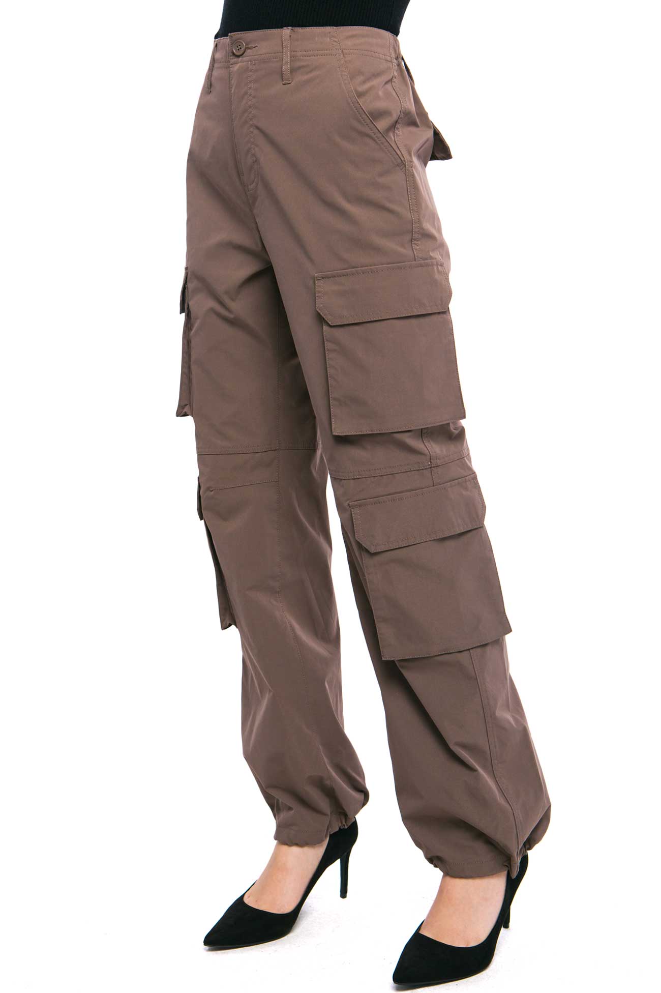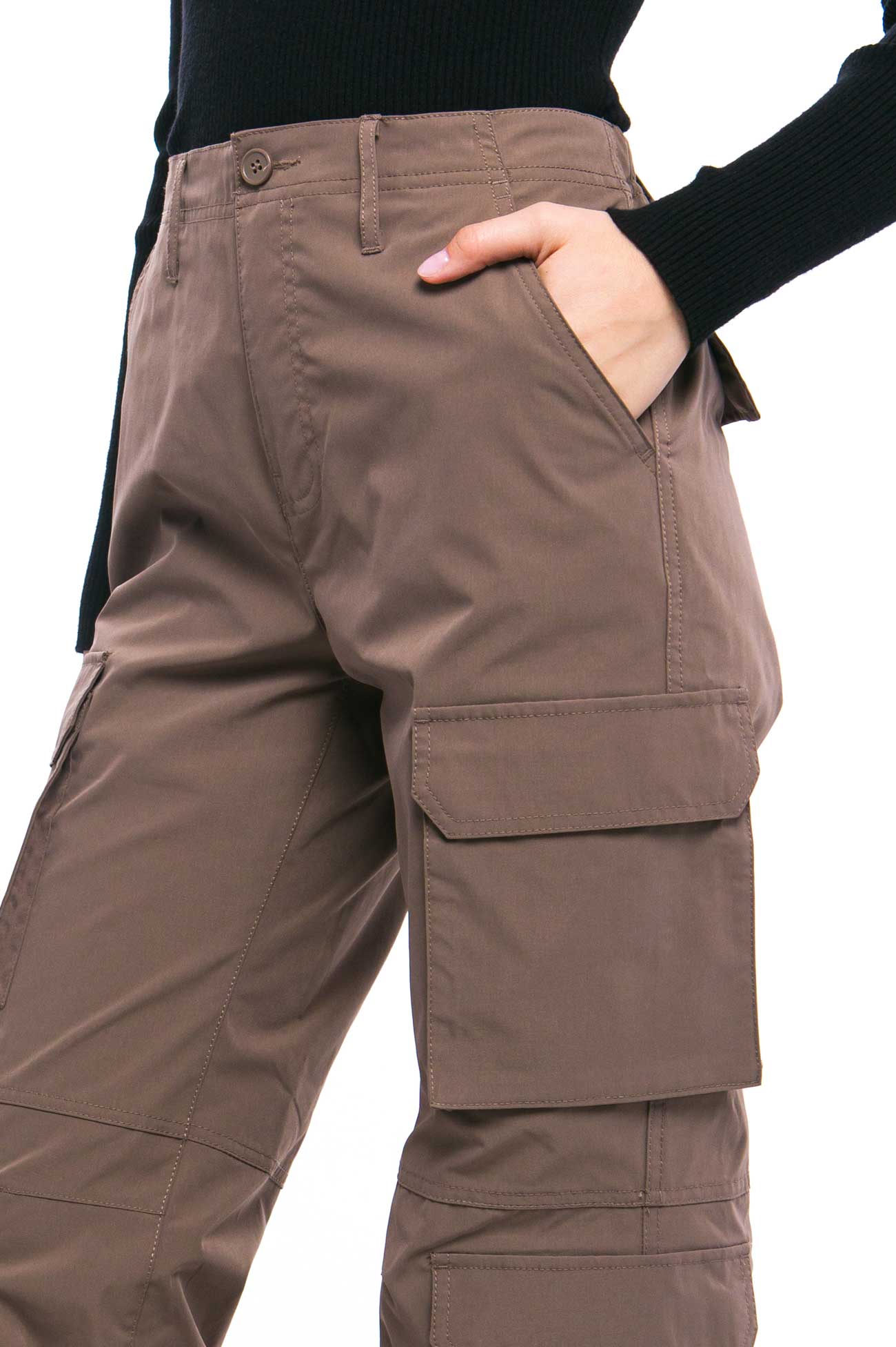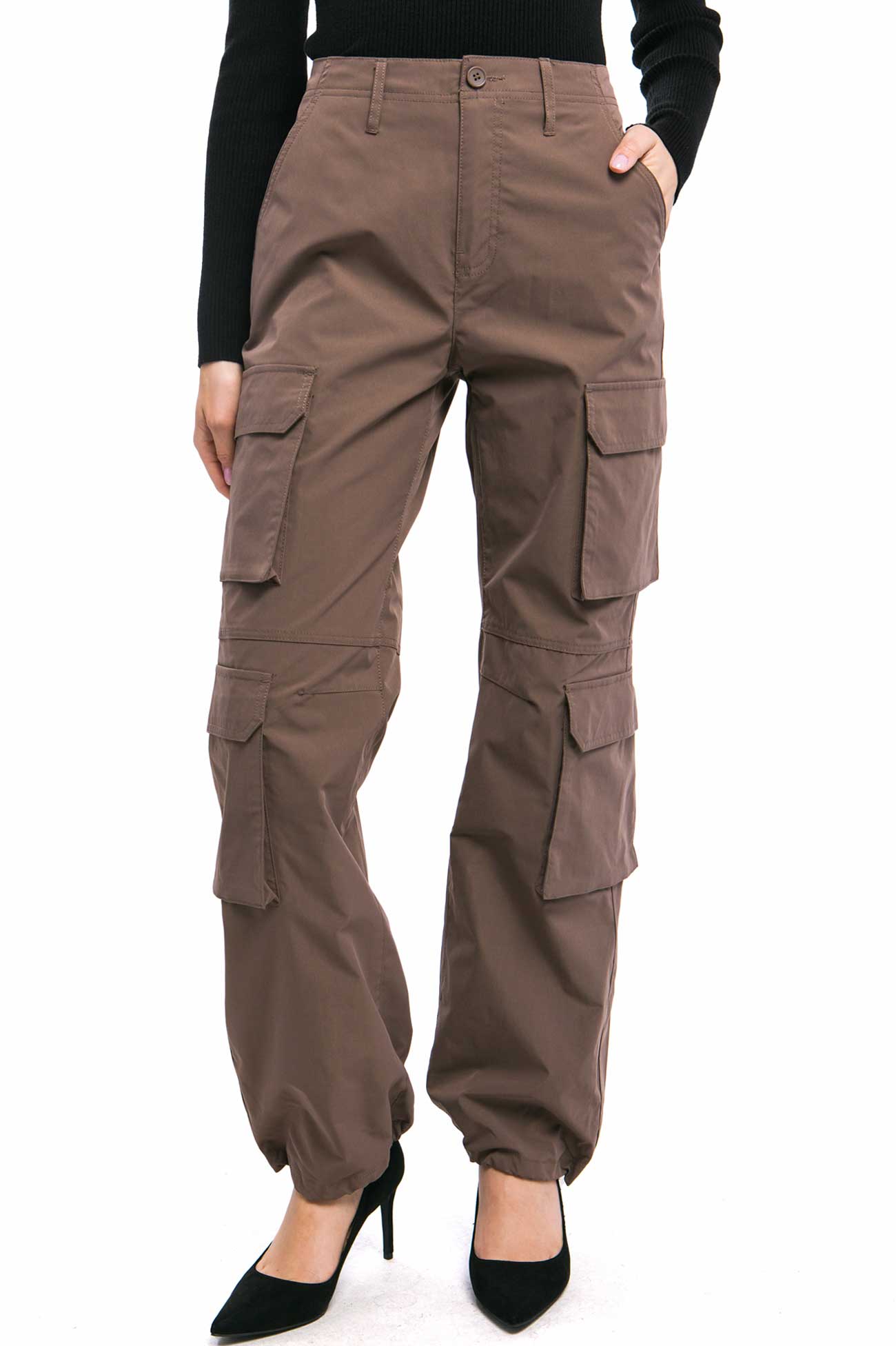 Light-weight skater pants with a high rise fit, a classic zipper fly and button closure. Straight-leg silhouette with oversized, cargo pockets down the leg and an adjustable, drawstring cord on the ankles.