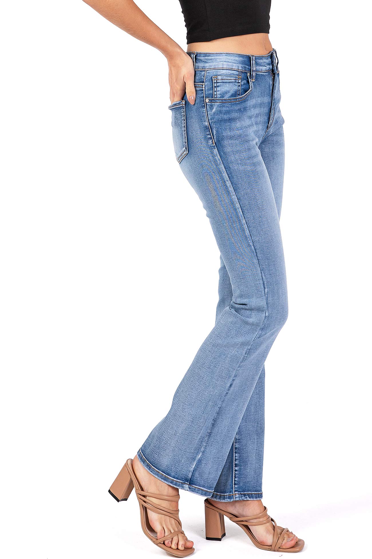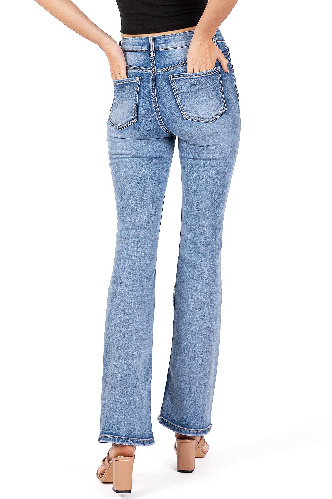 High-rise bootcut jeans with a slimming and lengthening silhouette. Traditional 5-pocket jeans with button and zip fly closure. Comfortable denim with decent stretch. Classic denim style to dress up or down.